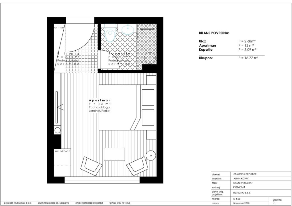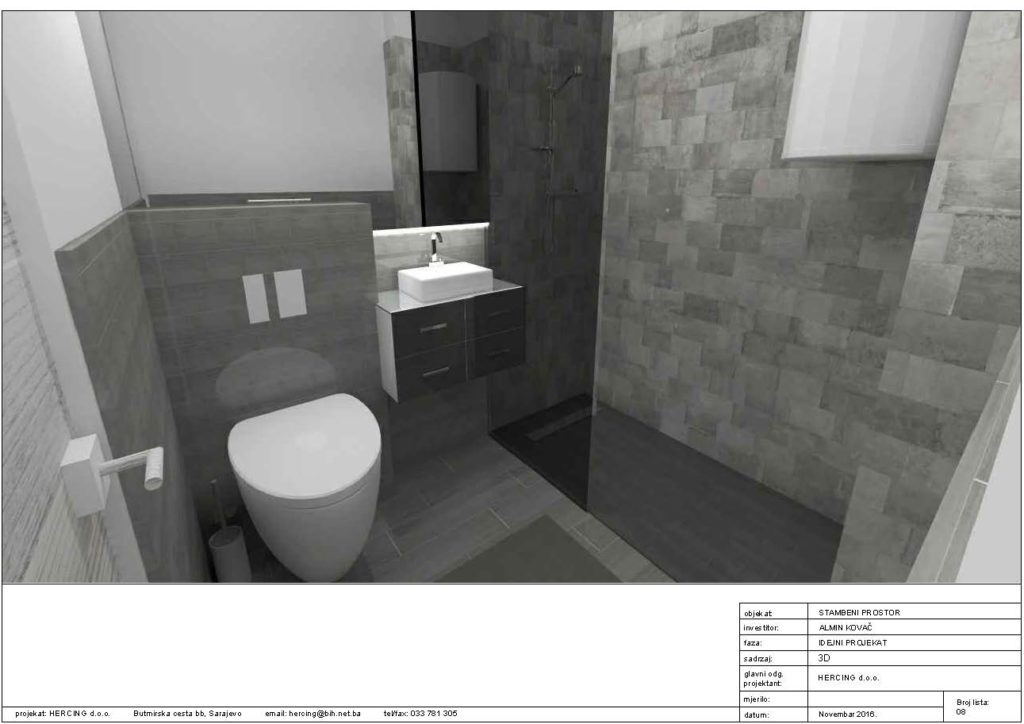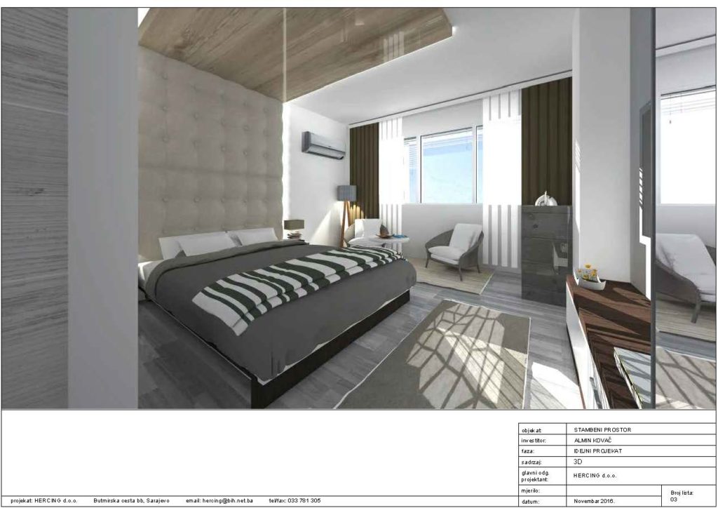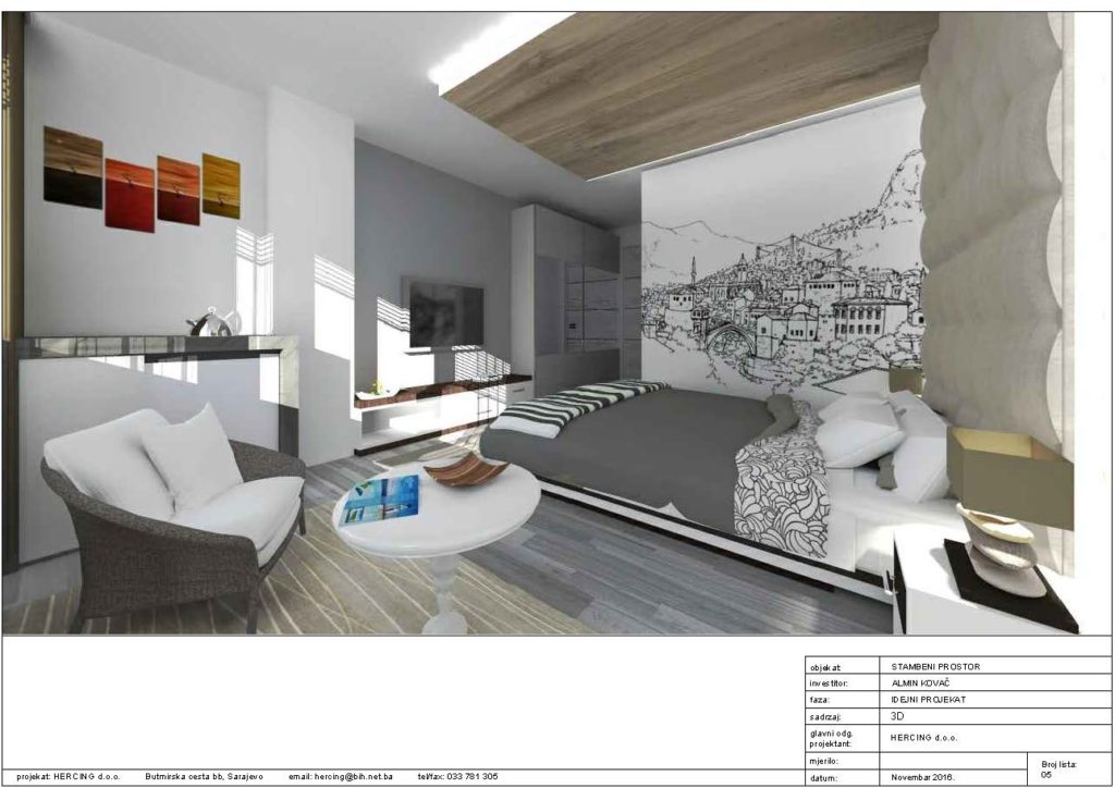 Postavka podnih i zidnih obloga, moleraj, spušteni strop i indirektna rasvjeta u apartmanu u Mostaru.