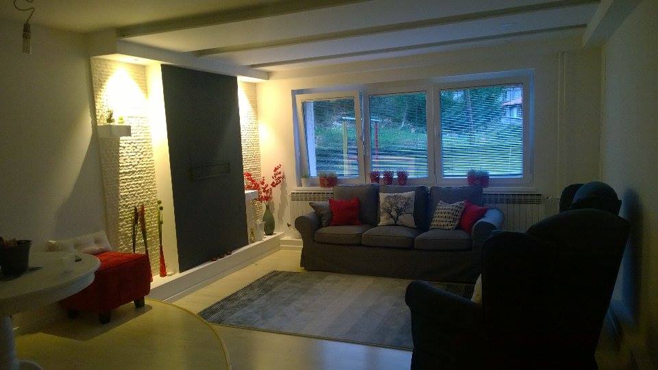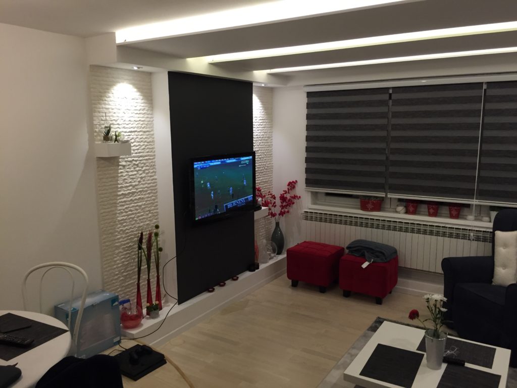 Radovi su upotpunjeni izvedbom spuštenog stropa sa indirektnom rasvjetom i rigips zida za TV.